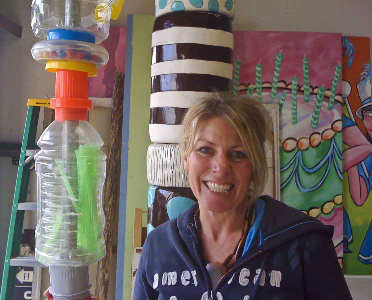 After graduating in art from UC Santa Barbara, she has always been an artist–she says her life was always directed to art, there was no other way for her. However, successful artists must be good business people as well, and she has proven her talents there, as well. Her website has both her one of a kind artworks and ceramic and linen good she has designed and had mass produced. Among other things, she is currently working on tiny versions of her large “beads”, since it is easier to sell smaller, cheaper items.