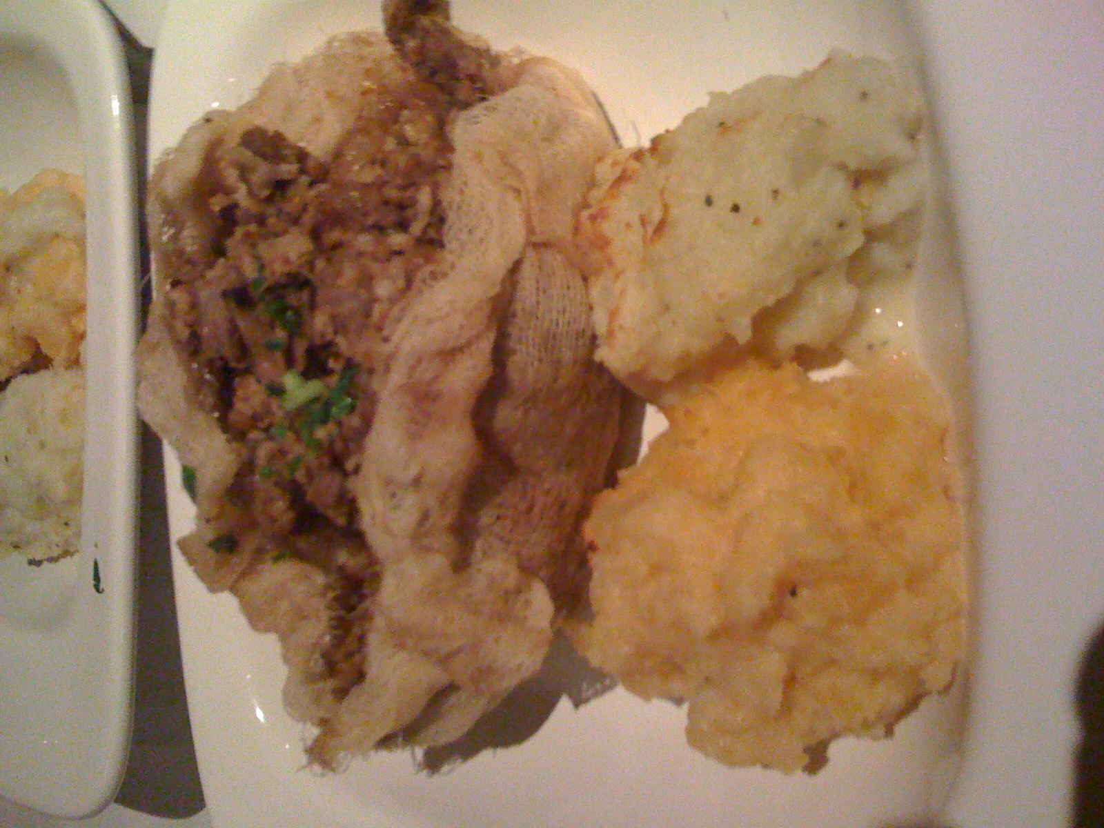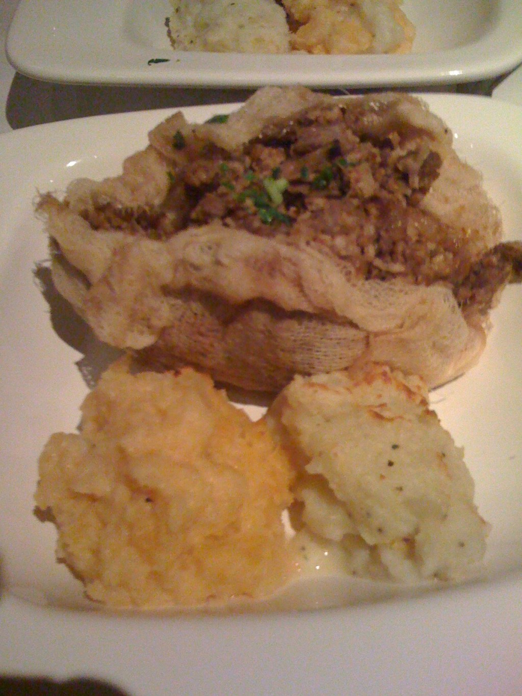 The rest of the food wasn’t particularly different, but the names are cute–we had inky pinky (roast beef in gravy with carrots), clapshot (turnip gratin), rumbledthumps (potatoes mashed with cabbage), skirlie ( oats cooked into a creamy polenta with caramelized onions) and a scotch egg (a hard cooked egg coated in pork sausage).