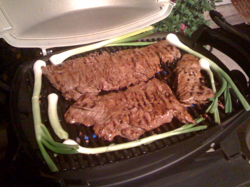 Okay, there are a few similarities. Men still like to barbecue, and Costco still sells great meat. This is an Arranchera, which is pretty much like a flank steak, sold already marinated at Costco. You can buy the Weber grill here, too. The spring onions are local. Dinner was great.