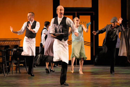 Essentially, it is just a review of the last 90 years of San Francisco history, as it played out across the floor of the cafe. The creators, ACT artistic director Carey Perloff and SF Ballet Choreographer Val Caniparoli, have fashioned a story regarding a bartender who loses his love in Italy and comes to America–and the ghost of the love follows him through time and space, tying the theme together. There is no real dialog or exposition, you only derive this from the dance. Since the dancers are great, you understand viscerally before you understand intellectually.