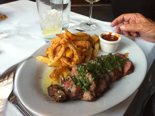 You’d expect Fried Chicken to be a standard at this place, and you’d be right. Both Joyce and Lorene ordered it, and they both took more than half of it home. The portions are enormous. The Chicken was great; their dinners also came with a fingerling potato salad that did absolutely nothing for me. Not particularly tasty, and with a strong coating of lemon juice which is just, well, wrong.