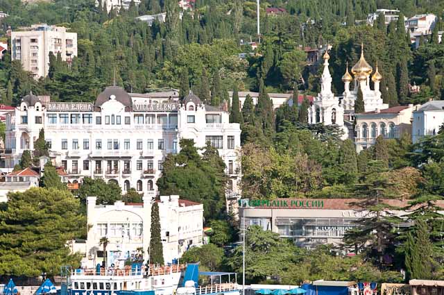 Woke up this morning to find us docked in Yalta, Ukraine. It’s a beautiful city, built on high hills that come right down to the water with no plains between, skyline of grand old houses and new apartments, punctuated by the bright golden domes of the Orthodox Cathedral.