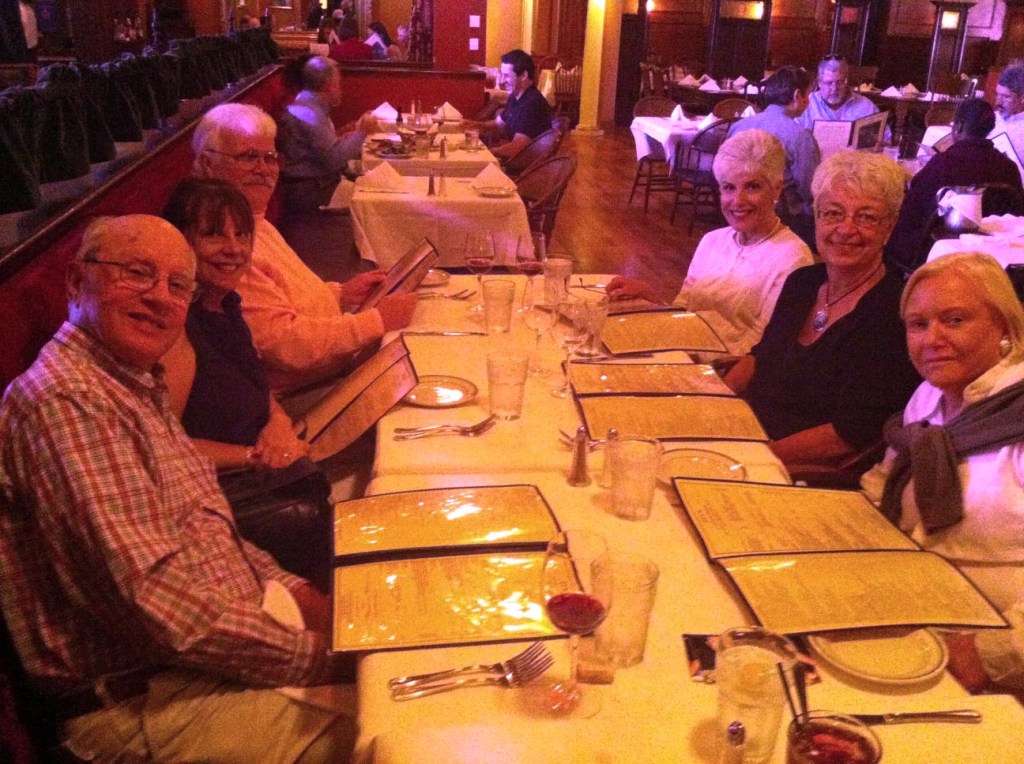 Izzy’s, at the corner of Bollinger and Alcosta in San Ramon, is an old-fashioned steak house, specializing in large slabs of meat. Gail had a Prime Rib, and I saw no leftovers. Buzz demolished a filet, Mike also had a Prime, everyone had BEEF.