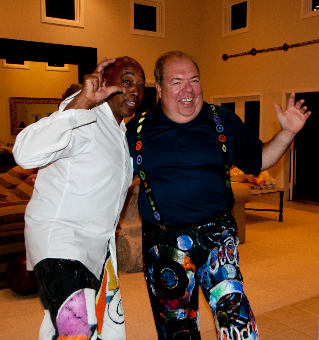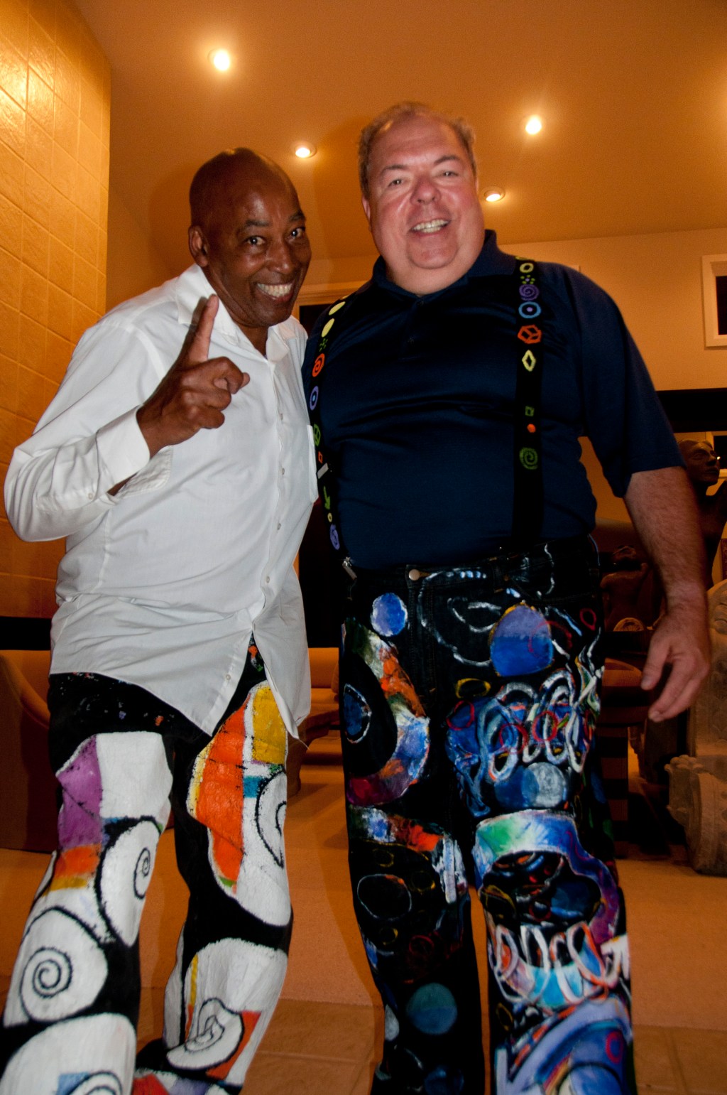 After we returned, we had a party which Leroy attended.  I greatly admired the painted pants he was wearing, shown in the photo above, and was mightily pleased when he took the Ethiopian pants and a pair of plain black suspenders and said he would paint them.  Last night he delivered on his promise: