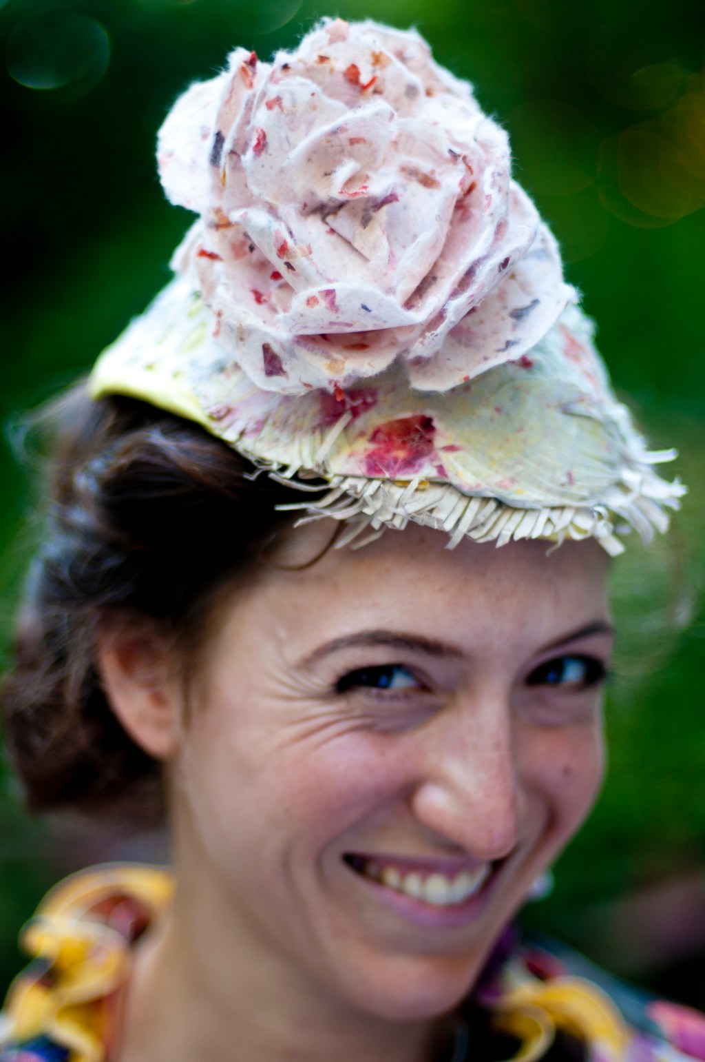 Gwen is a graduate student of Leroy’s, and an accomplished artist already. She is creating clothing out of hand-made paper–hats and corsets, which she makes from body casts of her clients.