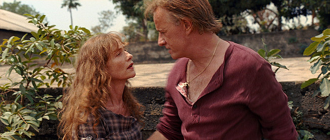 White Material , set in an un-named, generic African nation, is the story of a plantation owner, Huppert, who clings relentlessly to her farm and its ready-to-pick crop despict the massive civil unrest that has the French Army leaving, dropping survival kits from their helicopter as they urge her to flee. All the African clichés are here: there is the typical corrupt mayor, the children’s army of rebels, children too young to understand the meaning of the death they so easily dole out. The honest shopkeepers, trying to protect their pharmacy, slaughtered for their drugs. The ex-husband (Lambert) who has gone native with a local wife and son. The obese plantation owner luxuriating in his tiled bath. The crazy son, who goes completely mad and joins the rebels. If only there was a discernible plot, or rationale, or something to make all this hang together in some interesting fashion.