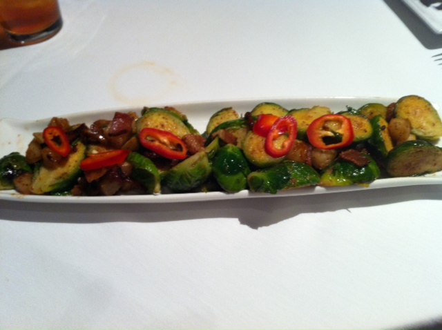 Roasted brussels sprouts, bacon, pears and fresno chiles. Not only was it great, but the portion was excellent. Which came in handy, because I ordered a flatbread which the waiter apparently forgot entirely.