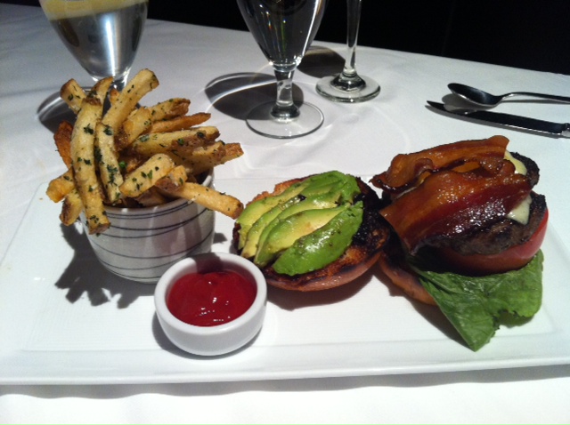 The burger was just great–thick, tasty, perfectly medium rare, ripe avocado, bacon, house made ketchup and mayo, seasoned fries. And too big for Gail to finish by her self, so I could help.