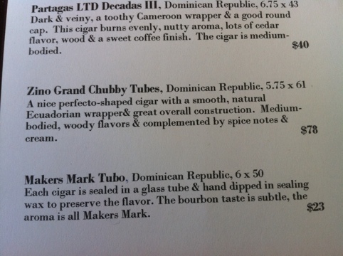 Part of the cigar menu here at the Lodge at Pebble Beach.