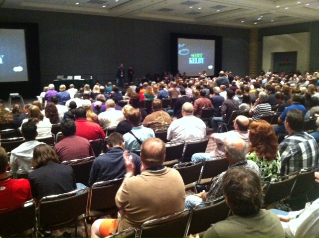 The end of show sendoff was pretty interesting–great slideshows from Frank Doorhof, Jack Black and Moose Petersen. Tons of door prize giveaways–not that I ever win anything. Big exhortations to come back in September for Photoshop World Las Vegas–which I won’t be going to.