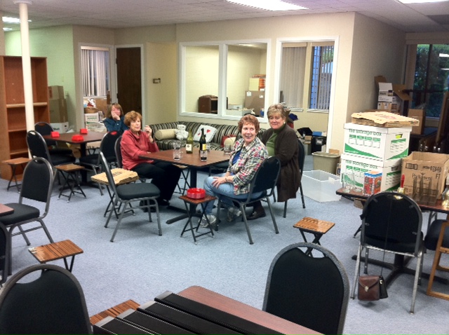 Barbara, Iris and Winnie toasting the completion of the move.