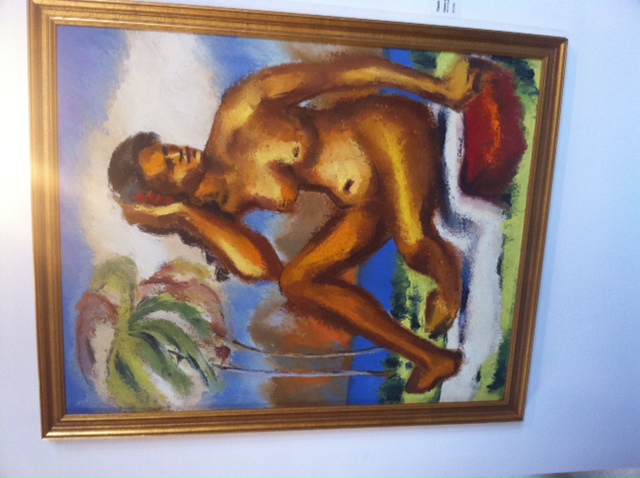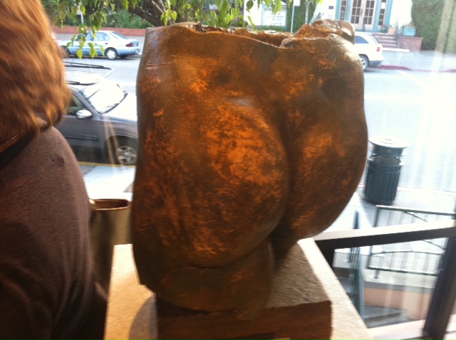 Then we walked around the corner, and saw a sculpture–a nude male torso, in plaster with an oil paint finish. Gail just had to have it; completely love at first sight.