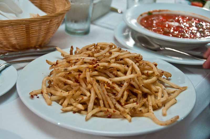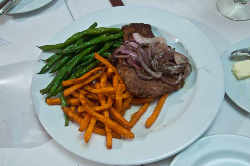 Hard though it is for me to imagine, some people actually like liver and onions. This dish, though, was overcooked. Again, the house did the right thing, taking the plate back and bringing out another, cooked properly, in just a few minutes.