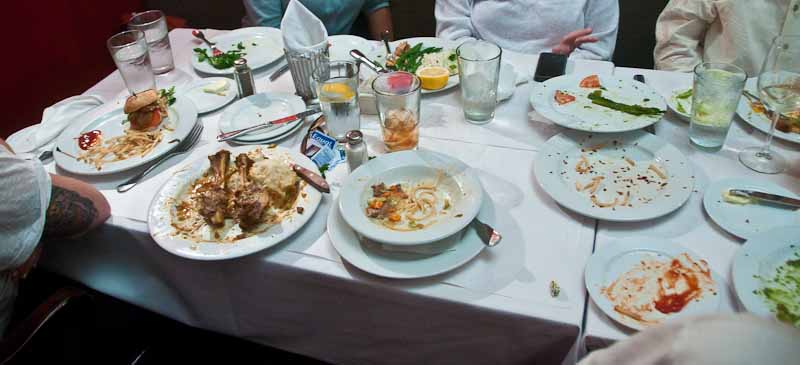 By way of apology, the house then brought out FIVE desserts for us. Apple pie, banana cream pie, lemon meringue pie, chocolate cake and creme brulee. Although we were stuffed, we didn’t want them to feel bad so we ate the desserts just to be polite.