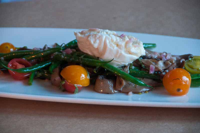 Kate had the salad with the burrata–but she probably would have just ordered the burrata if she could. It’s one of those items which become popular seemingly out of nowhere, and then you can’t imagine living without. Fresh mozzarella, injected with cream. Add just the tiniest pinch of fleur du sel (French sea salt) and you’re in heaven.
