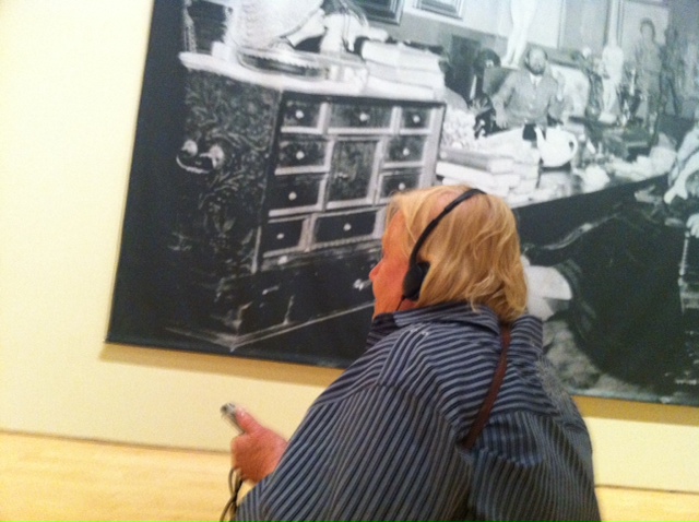 I know these things because of the audio tour–without which you simply cannot properly enjoy the show. The lectures are brilliant–the devices are miserable. They rely on touch screens to enter numbers relating to specific areas, and the touch screens don’t work well. Gail ended up using the end of her comb to enter numbers.