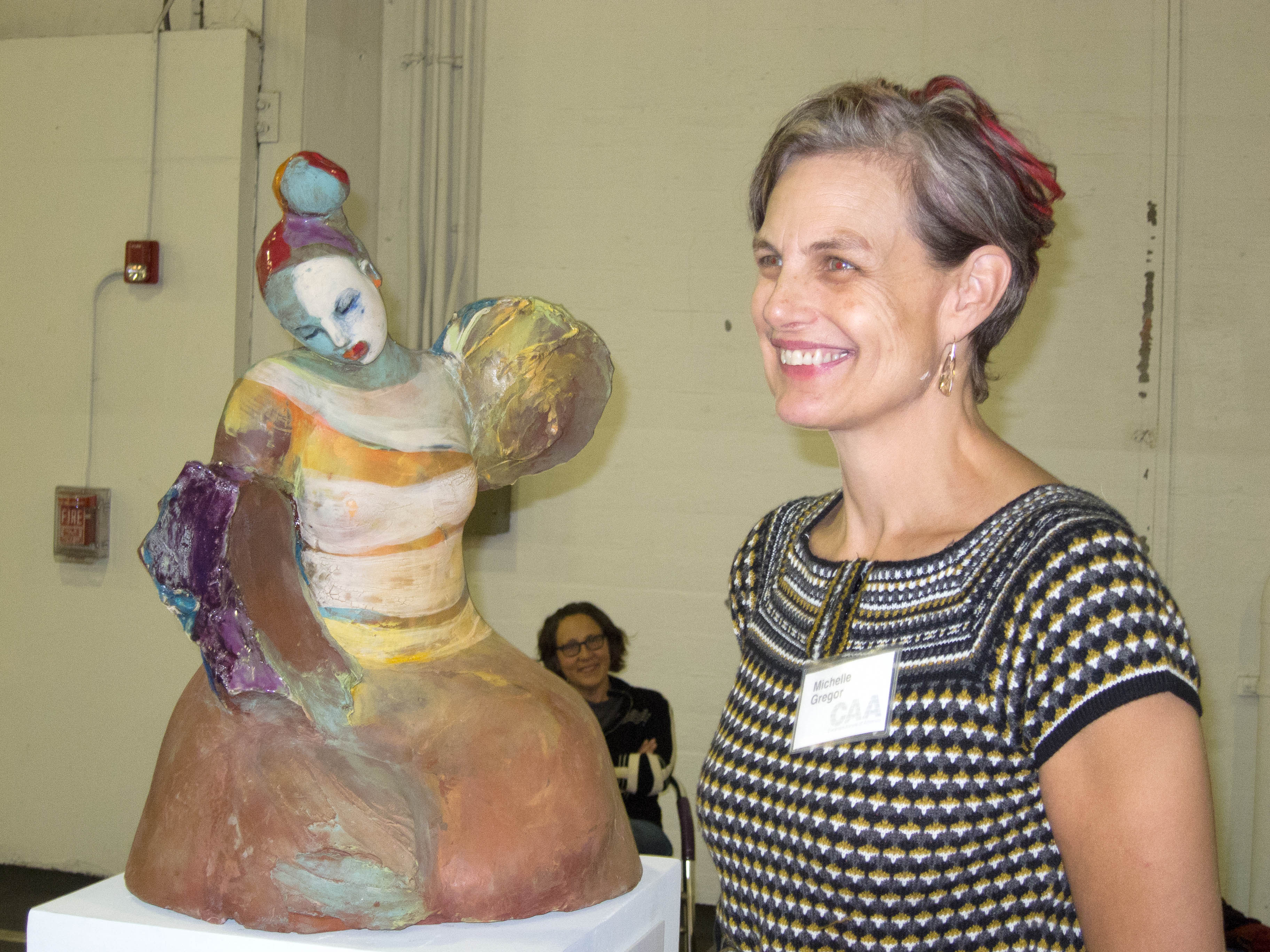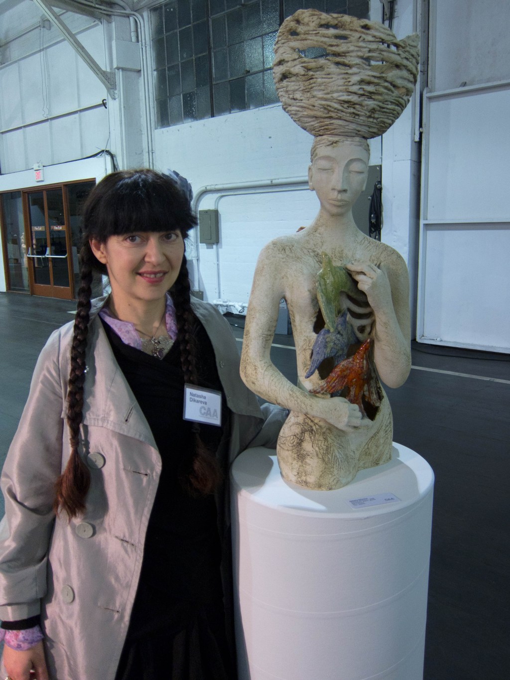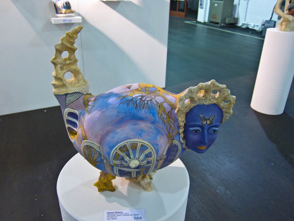 The Ceramics Annual of America show is a wonder of fine art–not a serving dish in sight. Work featured is cutting edge innovative, and spans a gamut from serious to whimsical. There was a performance artist eating a huge piece of chocolate and smearing much of it on his bare chest, but I don’t know what that had to do with anything ceramic or what it could possible mean.