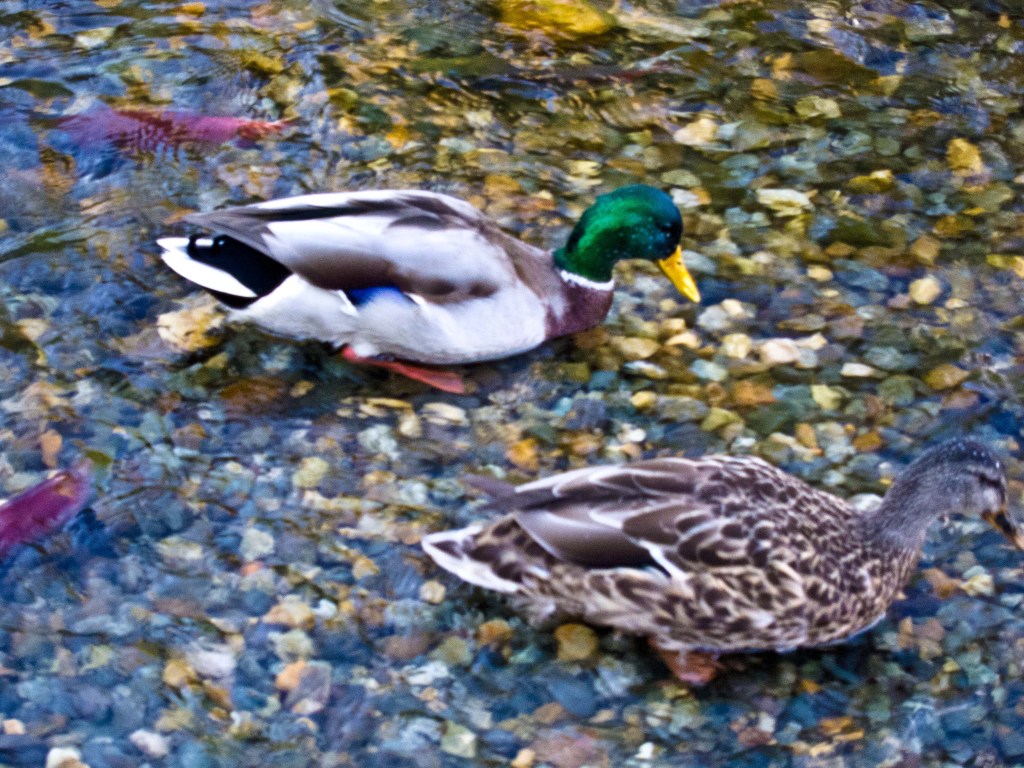 The waters are also filled with ducks, who follow the fish around and try to eat the eggs.  They get a bit more prominence here on the blog because they are easier to photograph, and I like ducks.