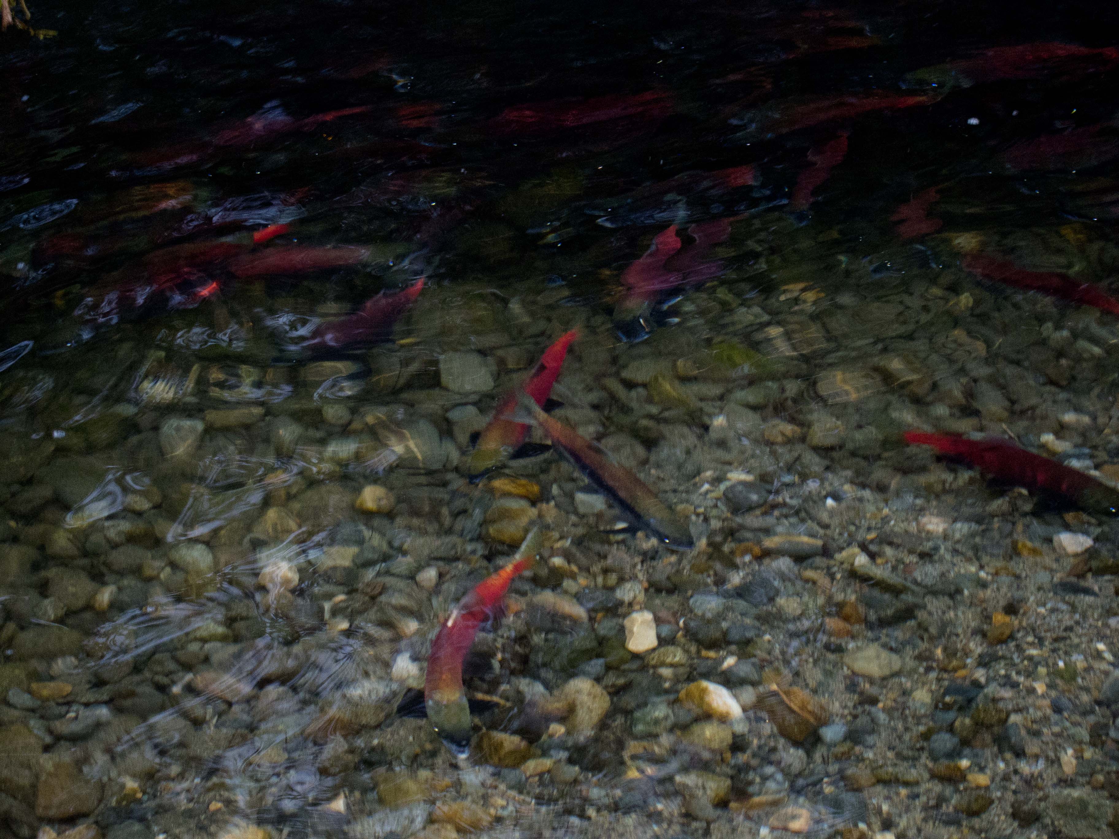 Spawning salmon in the crystal clear waters of the creek