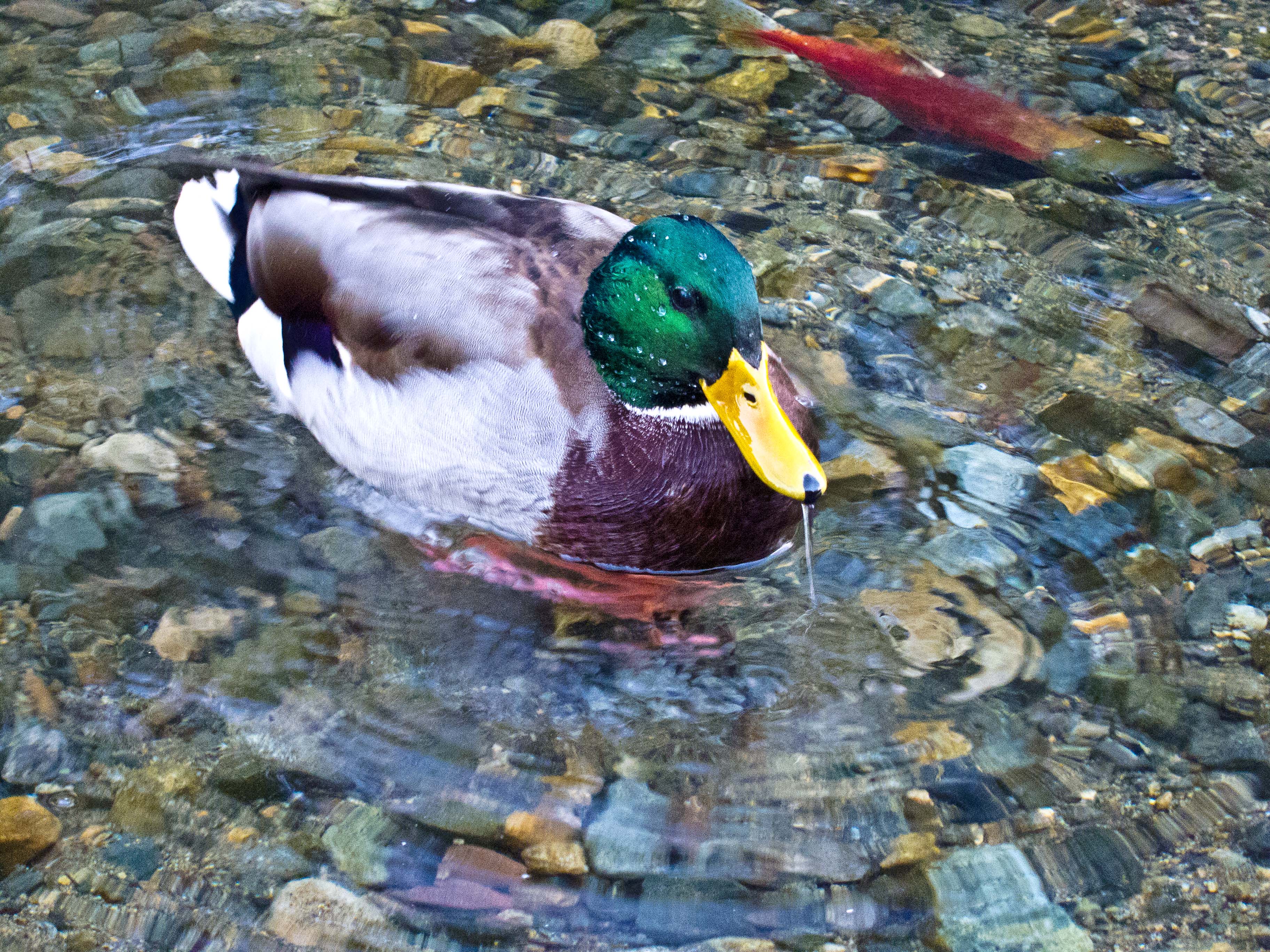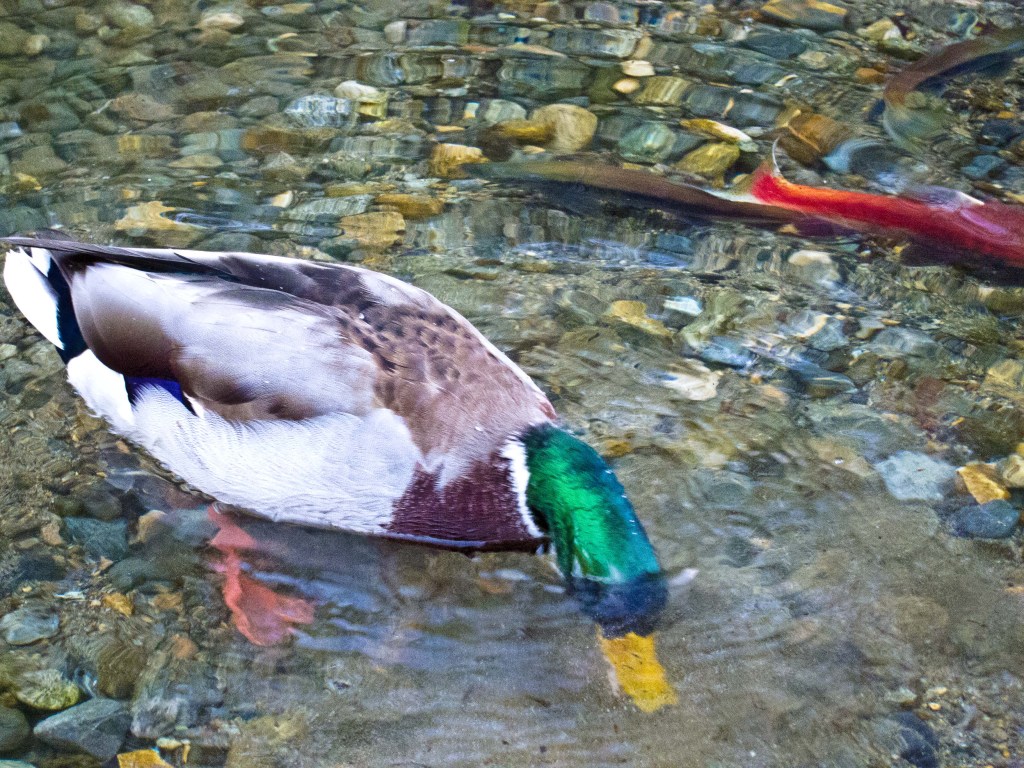 Duck grubbing for salmon roe.