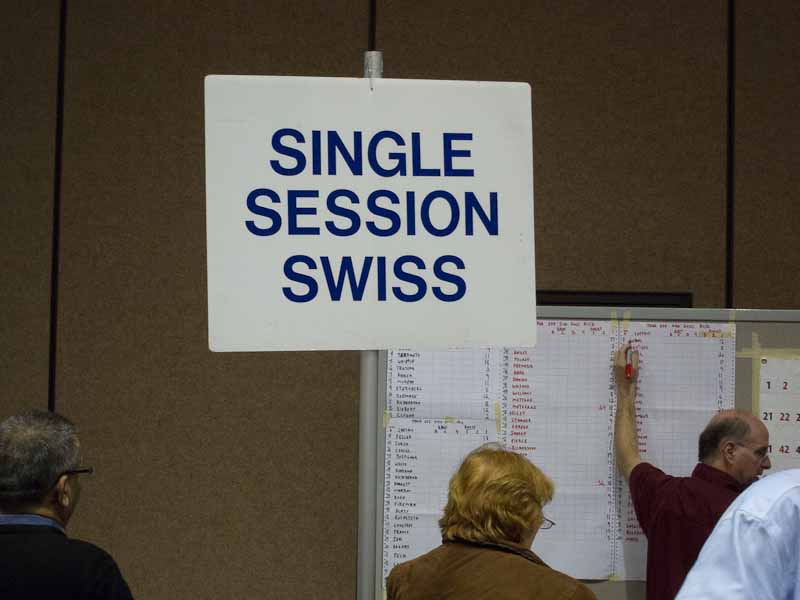 Then the director goes over to our teammates and says “Do you guys have a Mike Bandler on your team with 11,000 points?”  They say yes, and the director mentions that we are playing in the B-C-D Swiss, with a 3000 point limit.  This is not good.  It explains our easy wins, though.  The ladies we just beat are looking for their last 10 gold points.