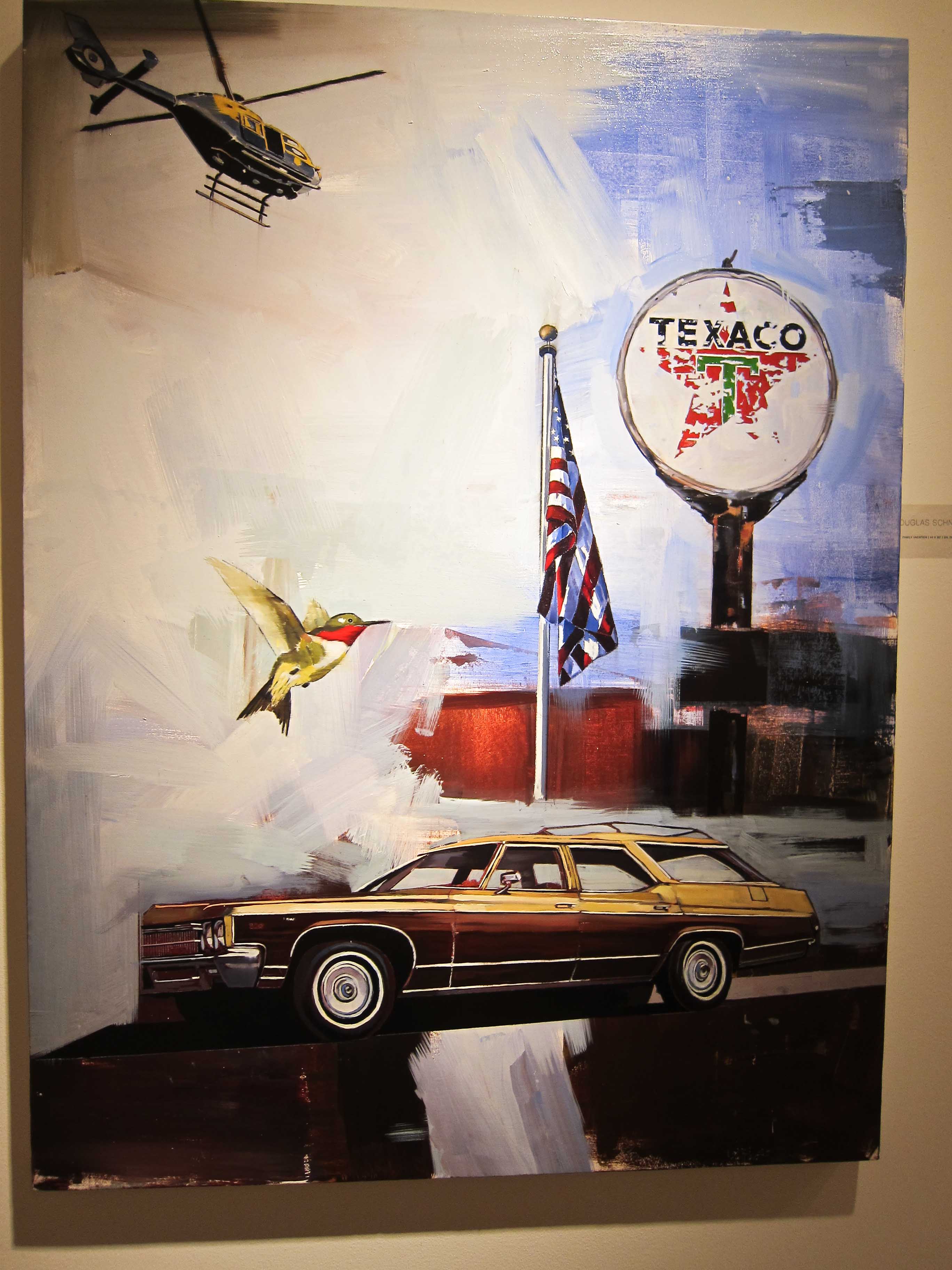 Doug paints in oils, and he was working so close to the deadline that many of the paintings were still wet, and the air was redolent with paint thinner.