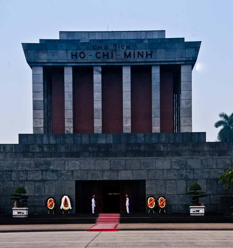 This is as close to a holy shrine as this country gets. You can’t take your camera in, you have to wear long pants, there are goose-stepping guards performing ceremonial duties everywhere. And then there is Ho. Embalmed perfectly, except for a completely white complexion. Glass coffin, you file through and then out. Thousands of people a day, including all the schoolchildren. I’ve seen Mao in Beijing, now I need to go to Moscow to see Lenin. Nothing says loving like looking at a stuffed dead guy.