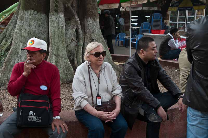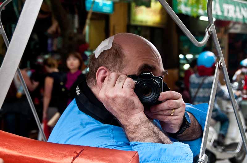 The guy who had to pedal me around town sure drew the short straw today, but we had a good time wandering through the narrow streets where a tour bus would not be able to go. When a part fell off my camera, I jumped out of the cyclo and raced back through the insane traffic to retrieve it–and found that people were pointing it out and carefully avoiding running it over. The traffic looks crazy, but they have a system and it seems to work.