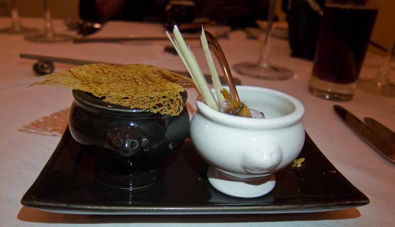 Gail ordered scallops, and was pretty concerned when a plate was placed in front of her that didn’t look at all like scallops. Strange faces were made, and then the waiter came back, said he was sorry, picked up her strange plate and put the scallops down instead.