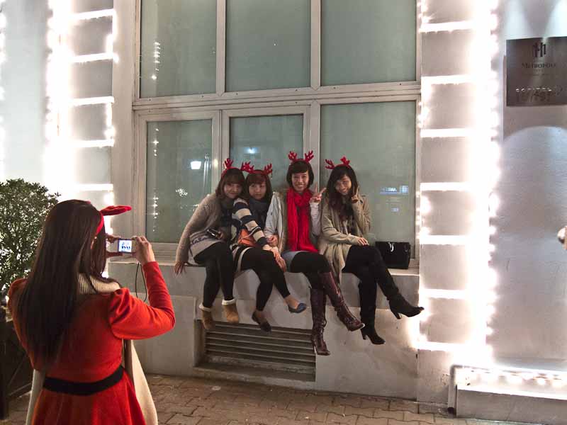 The hotel has pretty well covered itself in tiny white lights for the Christmas Season, and many people are coming by to take pictures. I liked this one: