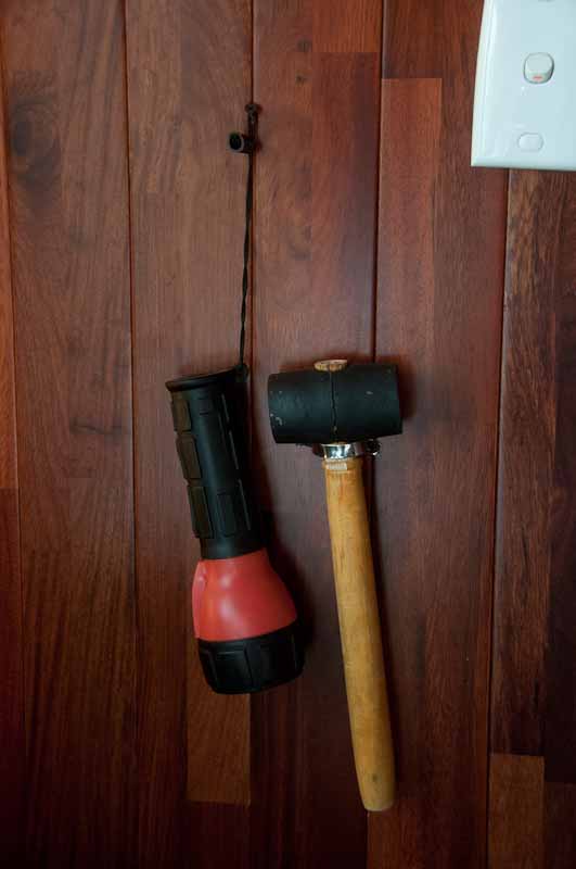 A cruise always starts out with a safety briefing. We were instructed where the exits were, what to do in case of fire, and where to find the important safety equipment in our room: the fire extinguisher, the life vests, the hammer. Yes, the hammer. With which to break the window and escape. It was next to the flashlight, so you could watch yourself drown, I guess.