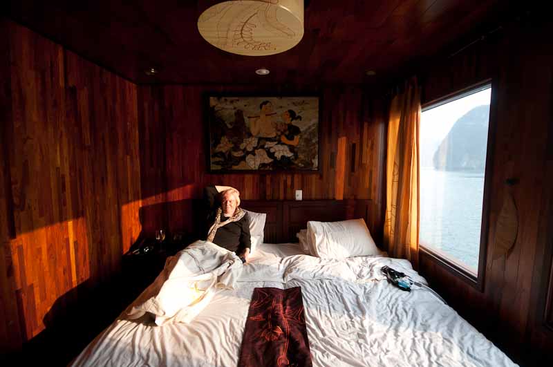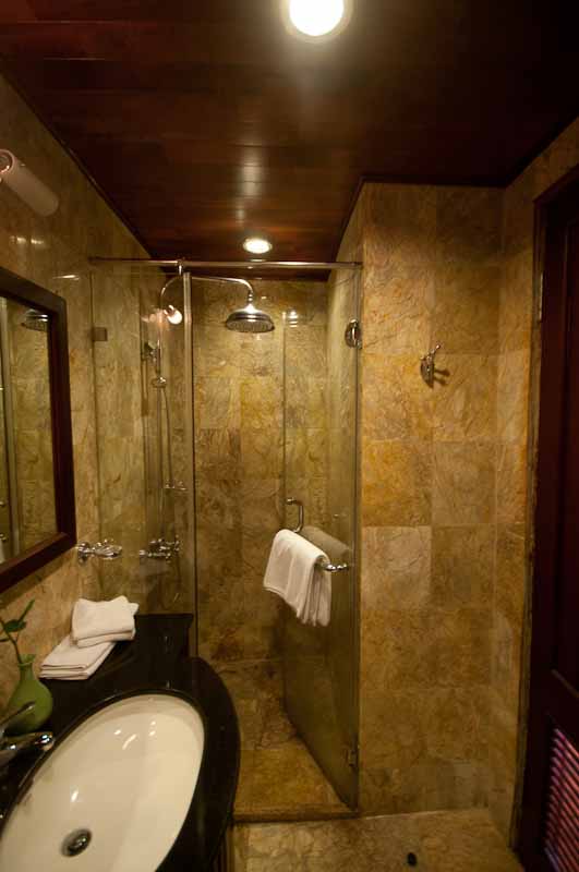 Nonetheless, our junk turned out to be a pretty nice boat; our cabin is tiny but well appointed with a lovely marble bathroom, a bed that just about fills the room, a mini-bar and a safe. I’m not the kind of guy who needs to put his wallet in the safe to go to dinner, but apparently plenty of people do, and this boat accommodates them.