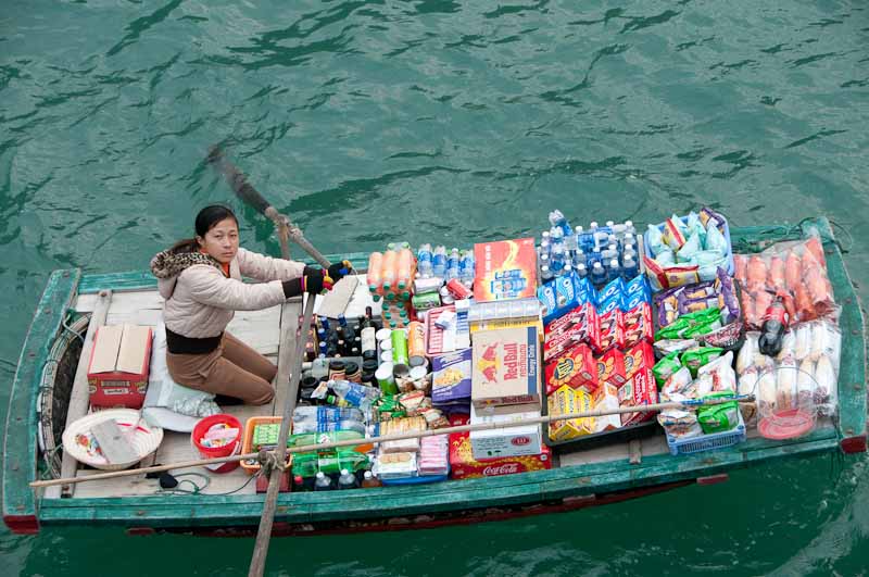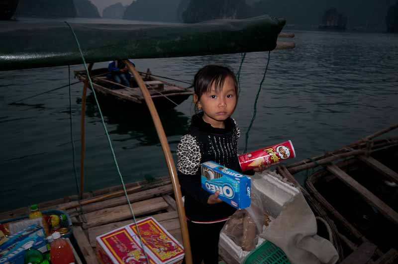 These women make a living selling to the tourists on the endless stream of tour boats. Some of them put their little kids to work, too:
