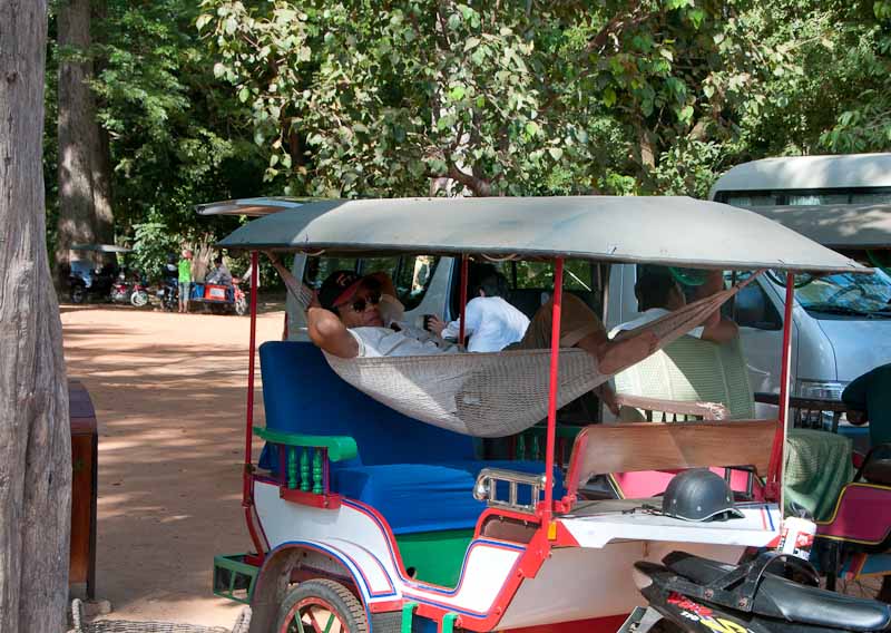 Everywhere you go, there are tuk-tuks.  Picking people up, dropping people off, waiting for a fare.  Mostly waiting.  Some of the drivers have it down to a science: