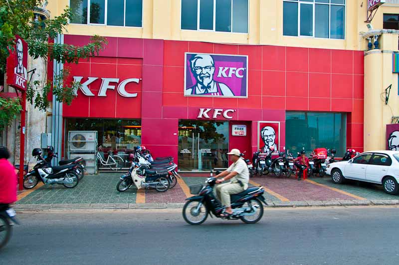 Notice the”Free wi-fi” sign. Internet access has a low penetration here, but I saw a considerable number of places offering wi-fi, including the memorial at the killing fields yesterday. This can’t all be for the benefit of the tourists, I have to assume that people are using the cafes for their internet access.