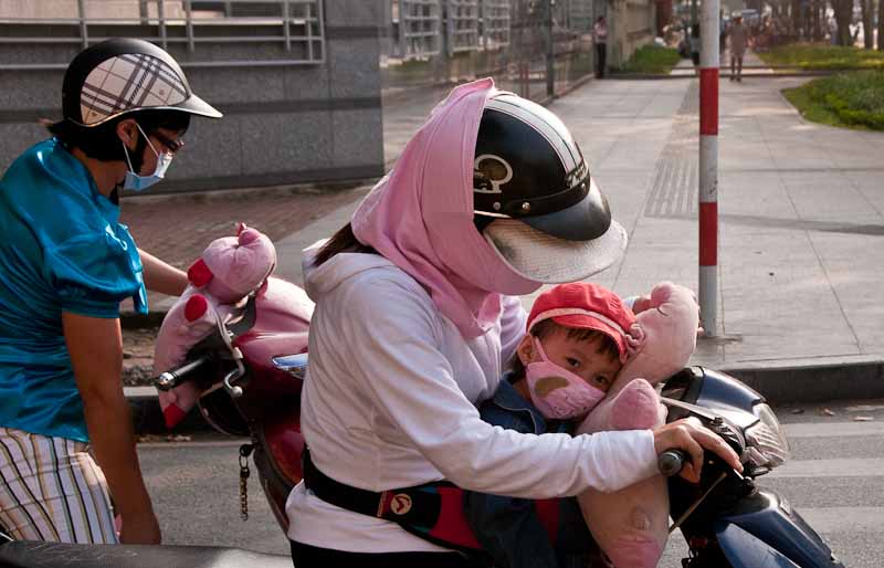 The mom and kid in front are cute, but notice the teddy bear on the bike in back