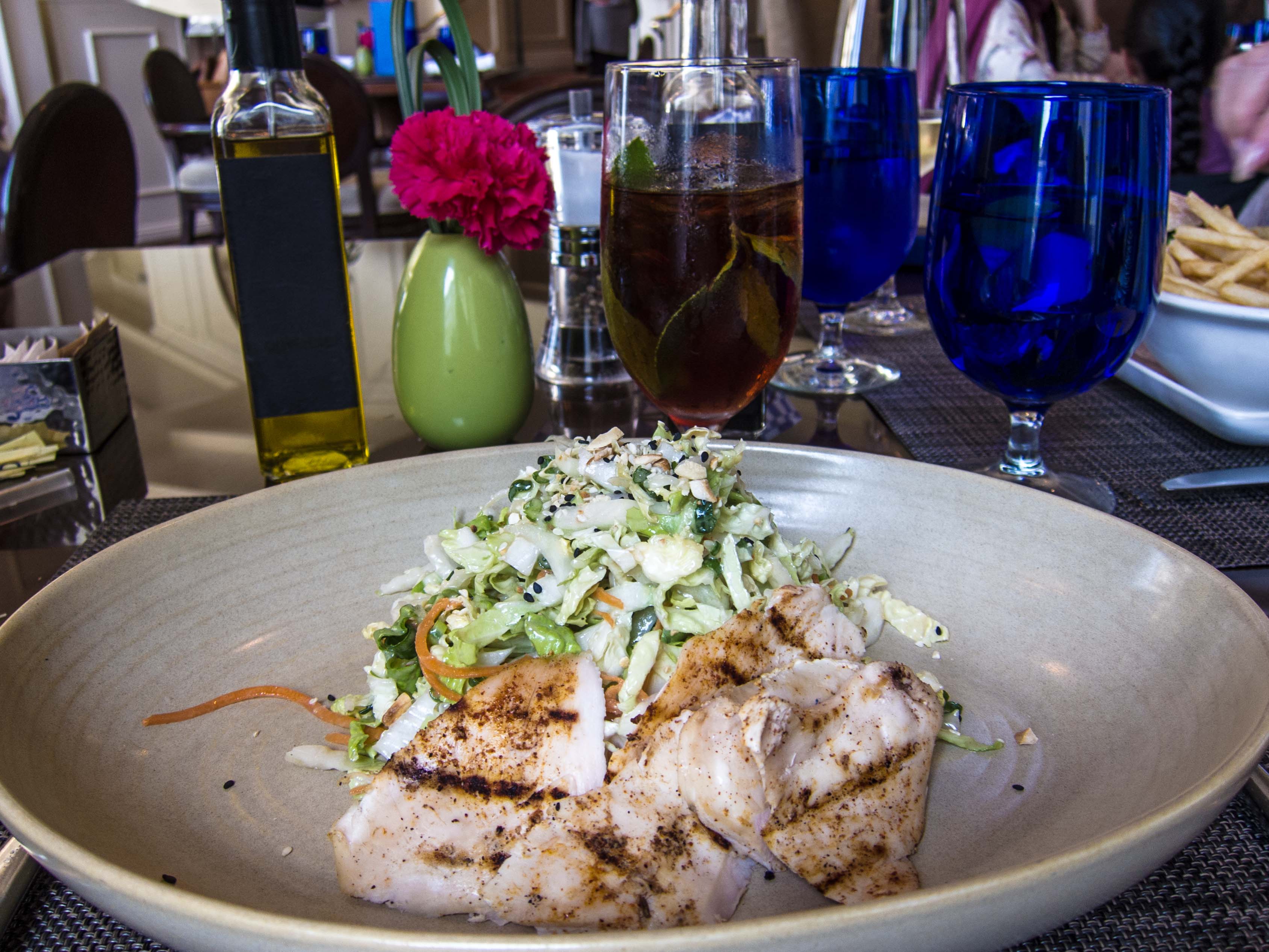 Service was good, but strange. A waitress who thought the fish of the day was tap-a-lia, which is sort of like tilapia. Couldn’t pronounce the “challah” that the salmon comes on, and it isn’t a roll anyway. Like being in the Enid, Oklahoma Ritz-Carlton.