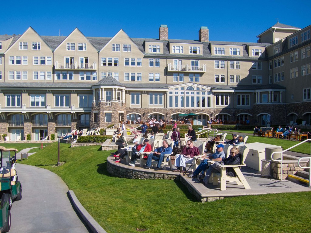 The hotel sits right on the shore, surrounded by its golf course. If you don’t chase little balls with big sticks, you can just sit in the comfortable chairs and enjoy the ocean air, have a drink, huddle near the large fire pit, watch the golfers and joggers and bikers who use the trail which, by law, is open to anyone.