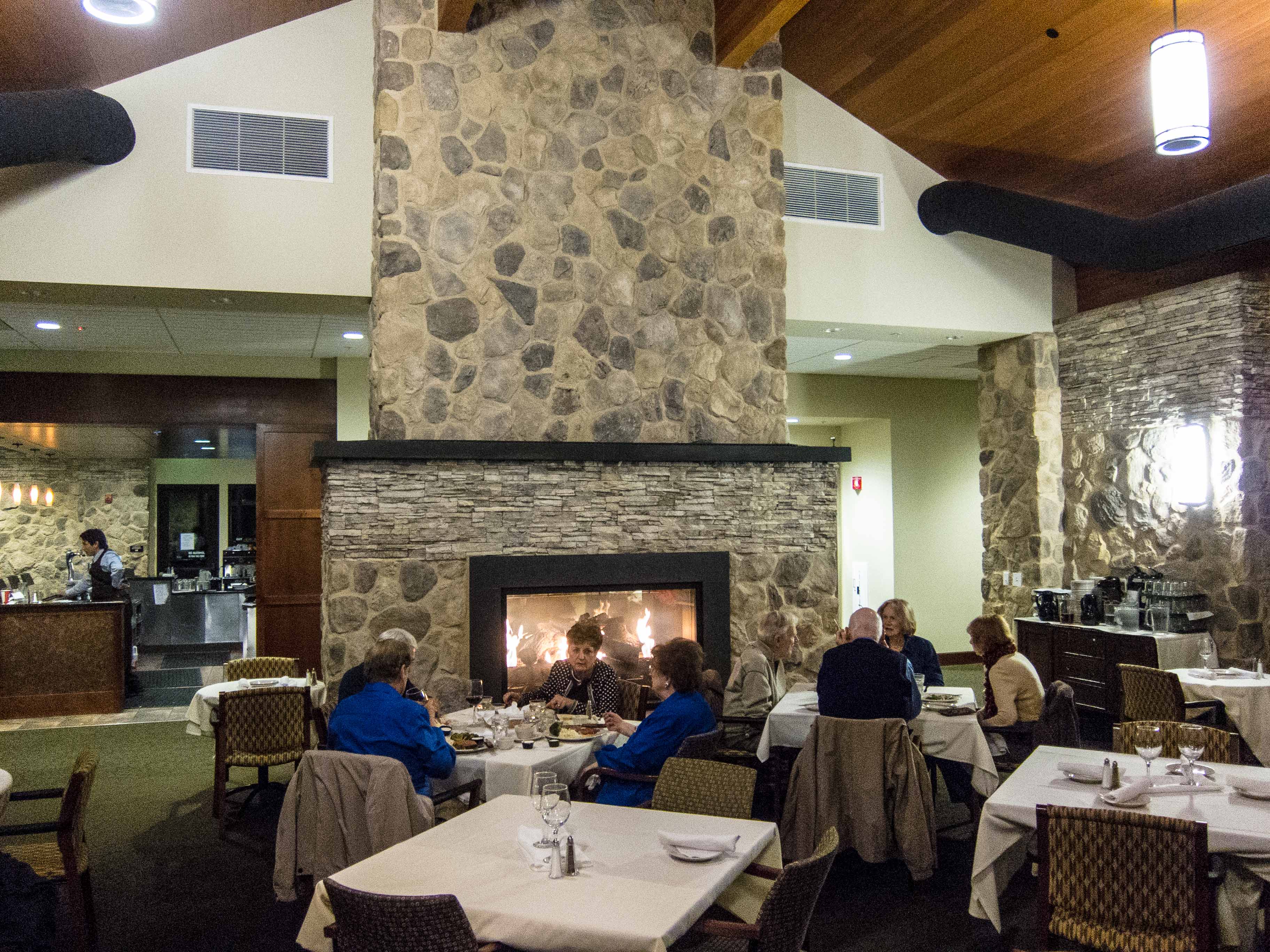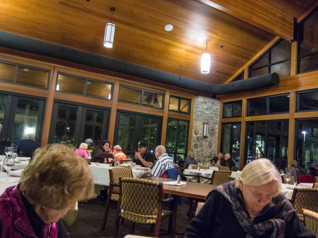 The facility is brand new, purpose built as a restaurant by Rossmoor and leased to the operator. One large, high-ceilinged room of wood and stone with large picture windows and huge fireplace, it reminds me greatly of more modern version of the Ahwahnee Hotel in Yosemite.