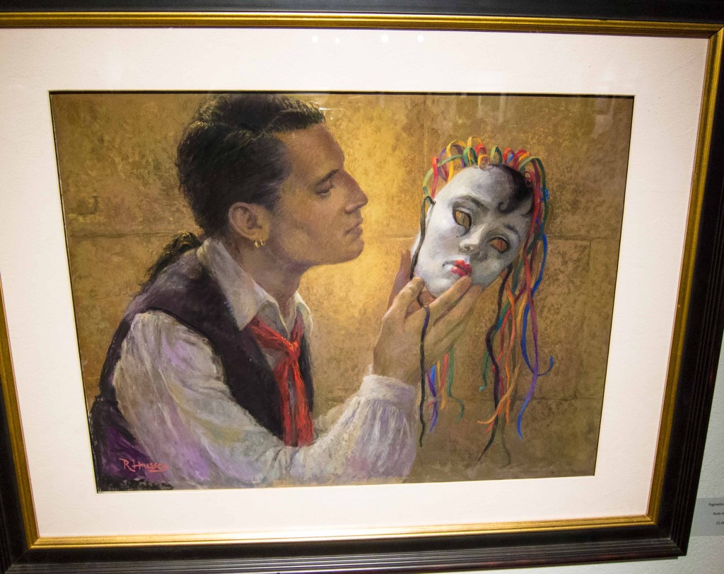The Harrington is a public gallery housed in the Firehouse Arts complex, a renovated firehouse which now contains both the gallery and a theater. I don’t know how big their mailing list is, but the turnout for the show was exceptional, and I’m pretty sure they weren’t all there for the free broccoli and dip–the art was excellent.