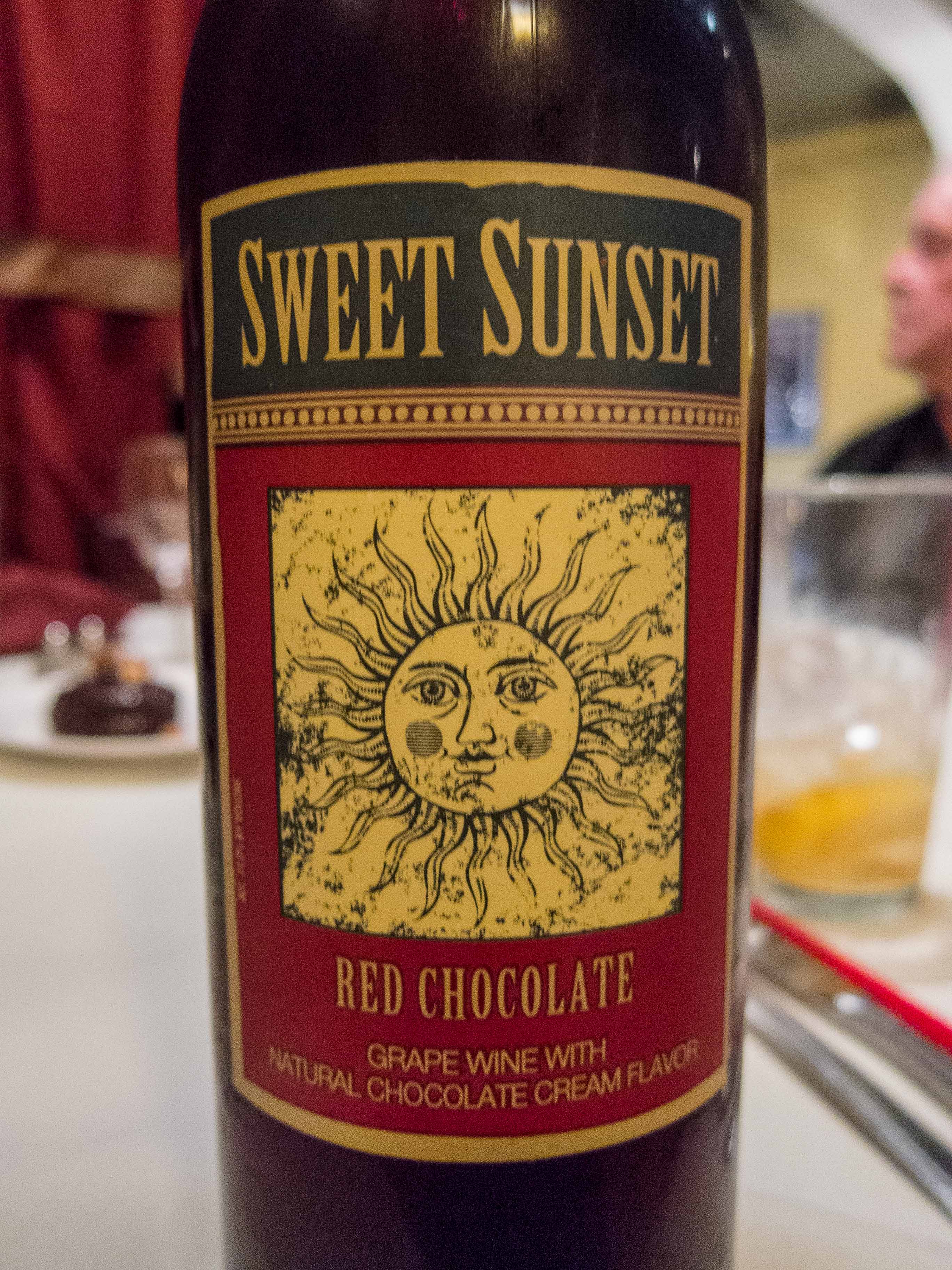 The dessert menu brought another surprise–a dessert wine for $3.50 a glass. Where can you get a glass of wine for less than a grande latte at Starbucks? And dessert wine is often quite expensive–sauternes can be prohibitive. It was called Sweet Sunset Red Chocolate. I’m not much of a drinker, but who can resist wine with chocolate in the name?