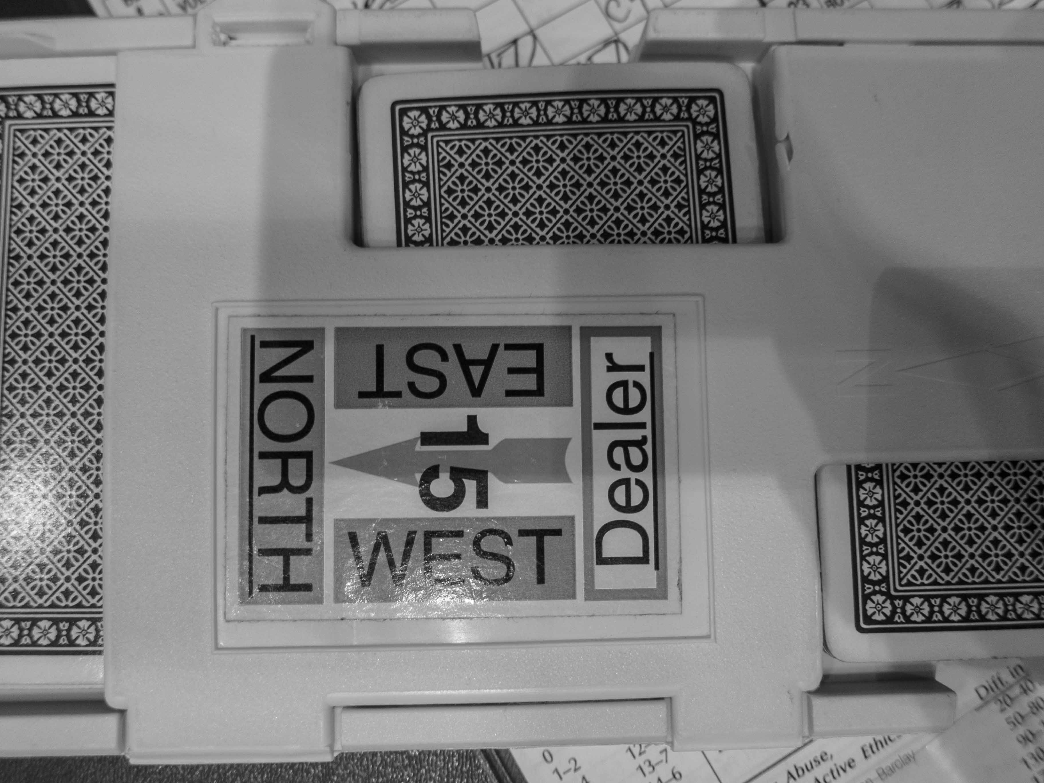 Can’t they find a better way to label the boards? Even this is easier than the boards with just a thin label down the middle. I’m not color blind and I find them hard to figure out. Surely there is an industrial designer somewhere in the ACBL who can improve this.