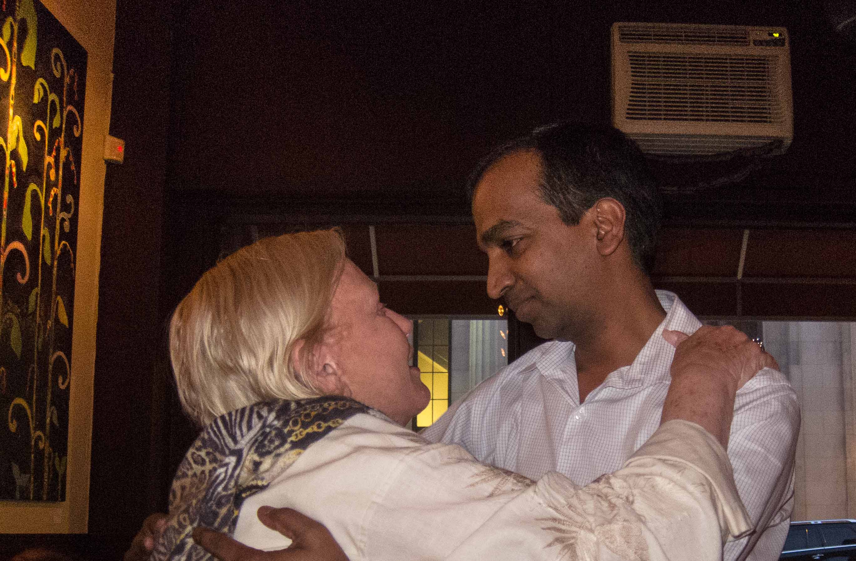 And then, while we were sitting at the table, who do we see walk by but Srikanth!! Mike and I had dinner with him last night, but he hadn’t seen Gail, so he came into the restaurant to say hello: