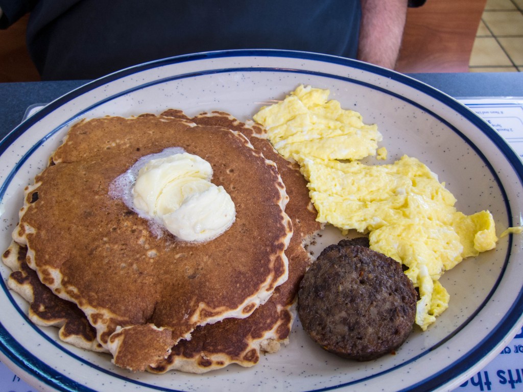 When I went to UC Davis, there was a breakfast place we went to that offered 3 eggs on its breakfast dishes–then we found out they meant the tiniest little eggs you’ve ever seen. I think that their purchasing manager is working at Peters Pancakes, these were like robin’s eggs. But the biscuits and gravy were classically wonderful, so it worked out.
