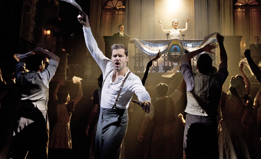 Pop music idol Ricky Martin plays Che, in a very different portrayal than in years past. Mandy Patinkin was a brooding, angry Che, filled with rage at the oppressive system. Martin, head thrust forward like Dan Ackroyd selling Bass-O-Matics, smirking like Burt Reynolds in Cannonball Run, is a (somewhat) more dispassionate observer. He has sold over 60 million albums; I guess you could say he can sing. Martin dances well, and the production seems to have him onstage most of the time. The audience was clearly his from his first entrance–which would explain all those younger women in swoon, although Martin is open about being gay. A girl can dream.