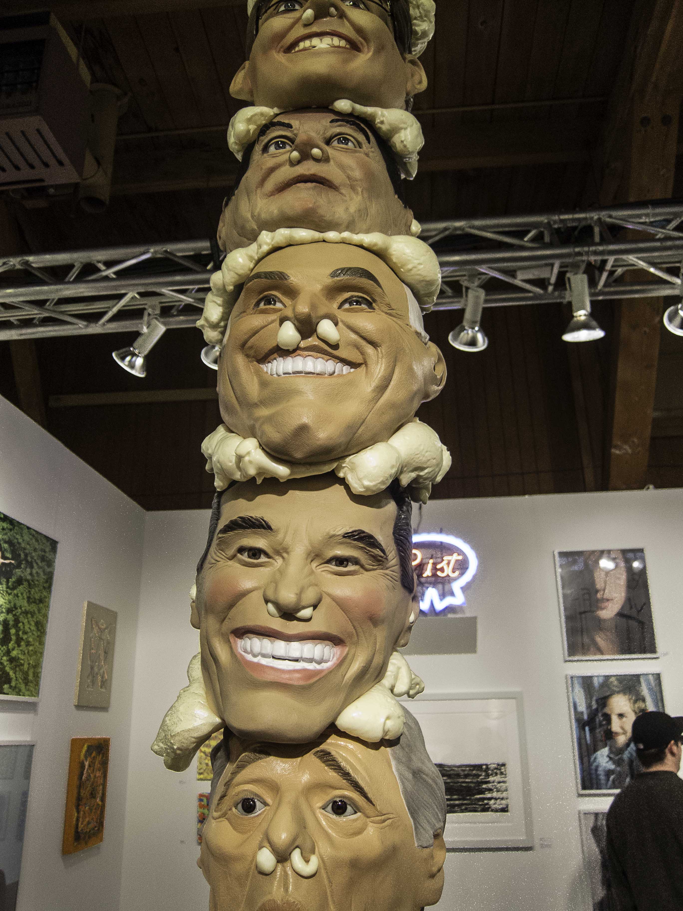 An interesting thing about art shows is the you can find pieces you hate interesting. This looks like a totem pole of politicians with gunk coming out of their noses. It’s about 15 feet tall, and just obnoxious. I wouldn’t have it in the house or the yard, and yet it is compelling enough to photograph and write about. That’s the art world for you.