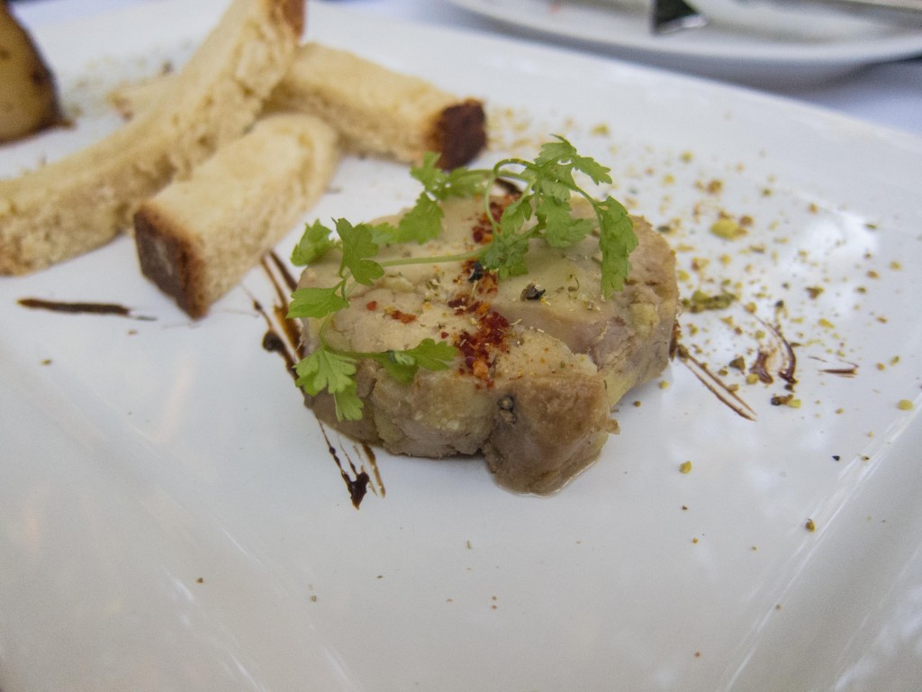 At first, the food was wonderful. Foie Gras will be illegal in California on July 1, courtesy of the tree-huggers at PETA, so that’s what I started with. A torchon of liver from an over-stuffed goose, accompanied by a bit of poached pear, was excellent.