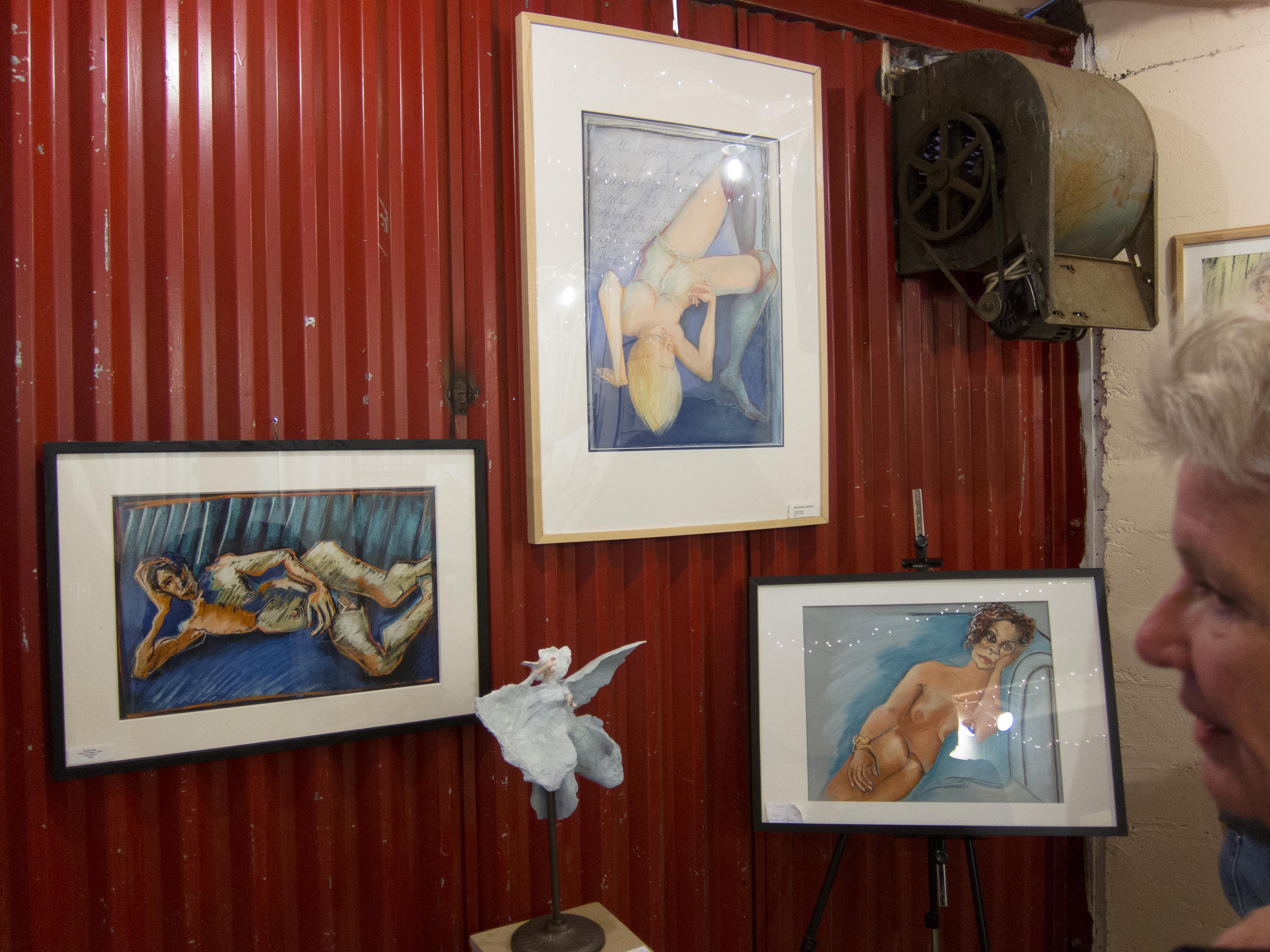 The proximate cause of the evening was that our friends Ted and Mary Bayer were involved in the art collective. Ted is a retired surgeon who has turned to sculpture. Mary has always been an artist.
