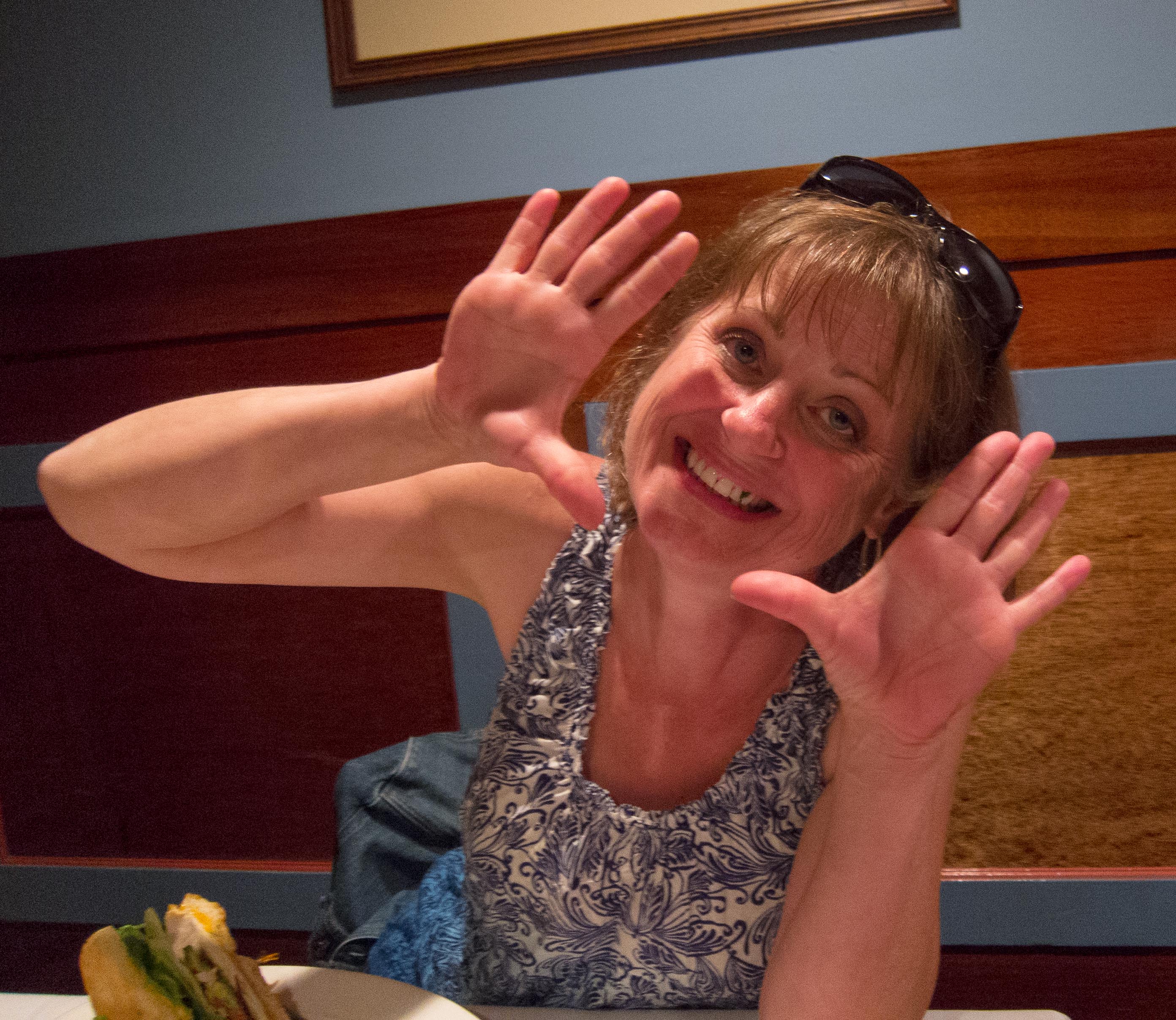 Linda is the daughter of a professional photographer and spent her youth in front of dad’s camera, so she doesn’t usually let me take her photo. Tonight, perhaps as a benefit of the wine, she insisted that I include her in this, so I’ll end with it. Good thing I took all those portrait classes.