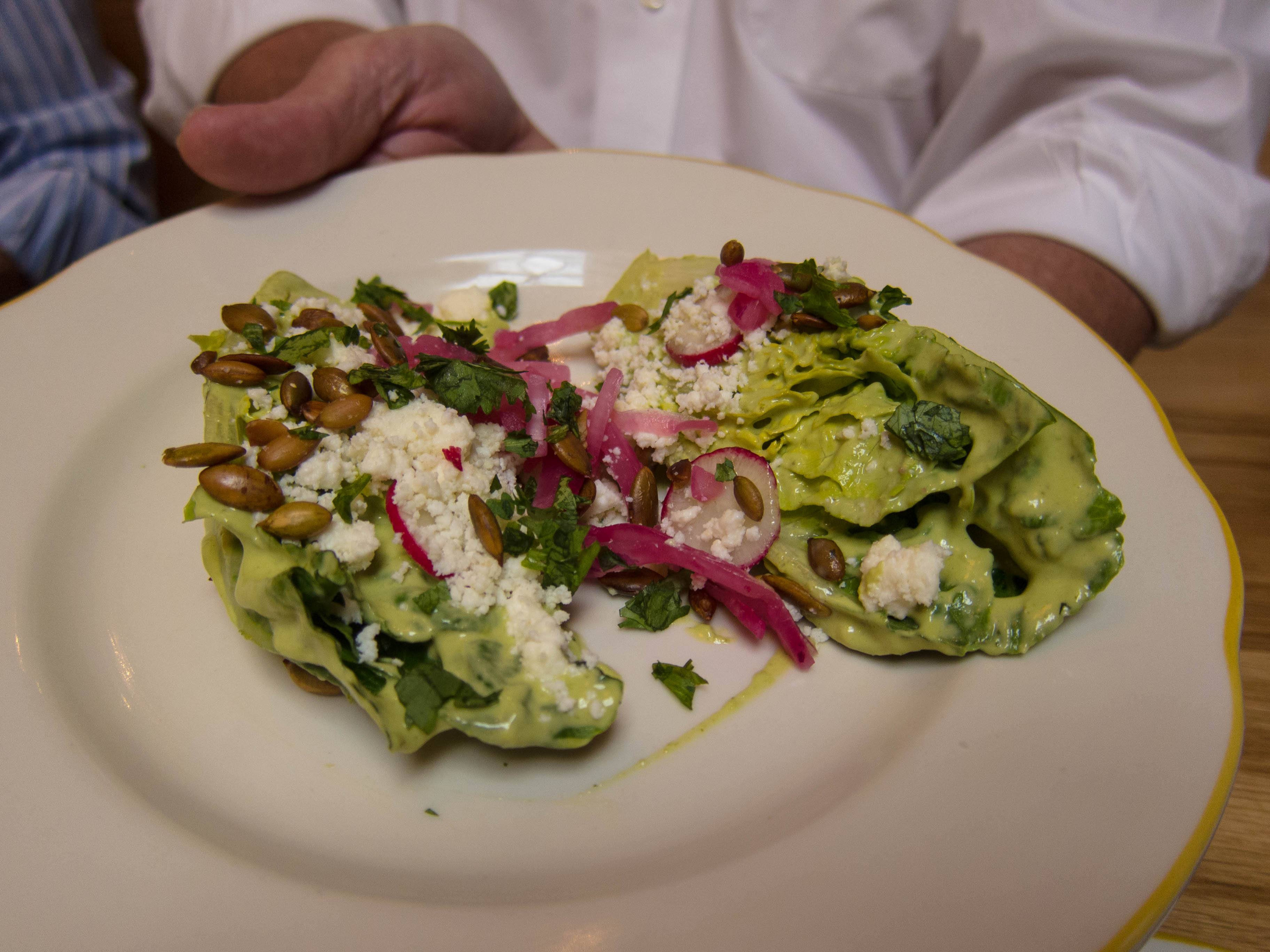 Putting lettuce on a plate does not a salad make. The cotija cheese, pumpkin seeds and a marvelously subtle dressing brought this ensalada to an entirely new level of rabbit food.